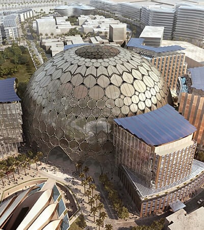 يمكنك الاستمتاع بمشهد عرائش قبة أكبر شاشة عرض في العالم بزاوية 360 درجة التي يوازي اتساعها المسافة بين جناحي طائرة إيرباص A380s تقريبا، من ابتكار شركة آدريان سميث + غوردون جيل المعمارية.